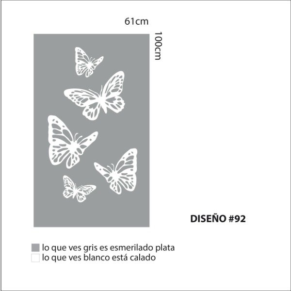 Una plancha de vinilo autoadhesivo esmerilado con Diseño calado. Tamaño de la plancha 100cm x 61cm.