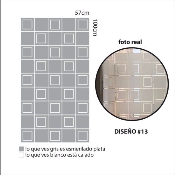 Una plancha de vinilo autoadhesivo esmerilado con Diseño calado. Tamaño de la plancha 100cm x 57cm.