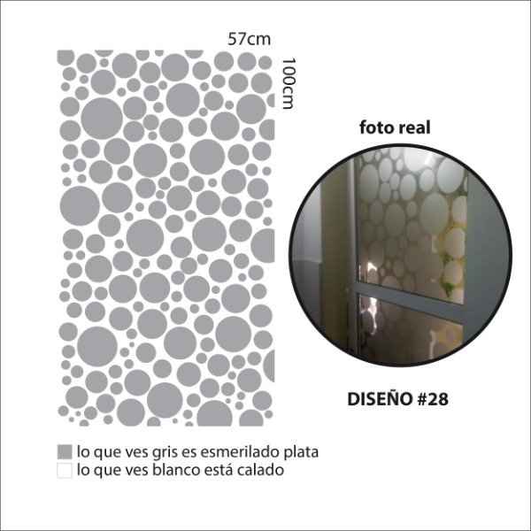 Una plancha de vinilo autoadhesivo esmerilado con Diseño calado. Tamaño de la plancha 100cm x 57cm.