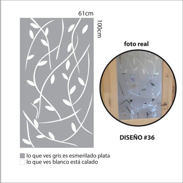 Una plancha de vinilo autoadhesivo esmerilado con Diseño calado. Tamaño de la plancha 100cm x 61cm.