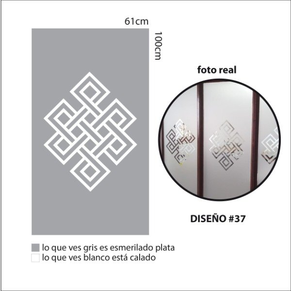 Una plancha de vinilo autoadhesivo esmerilado con Diseño calado. Tamaño de la plancha 100cm x 61cm.