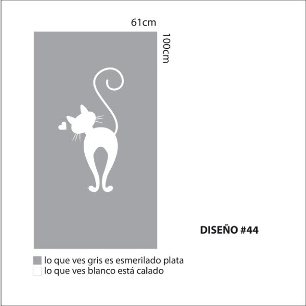 Una plancha de vinilo autoadhesivo esmerilado con Diseño calado. Tamaño de la plancha 100cm x 61cm.