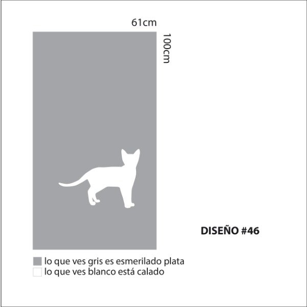Una plancha de vinilo autoadhesivo esmerilado con Diseño calado. Tamaño de la plancha 100cm x 61cm.