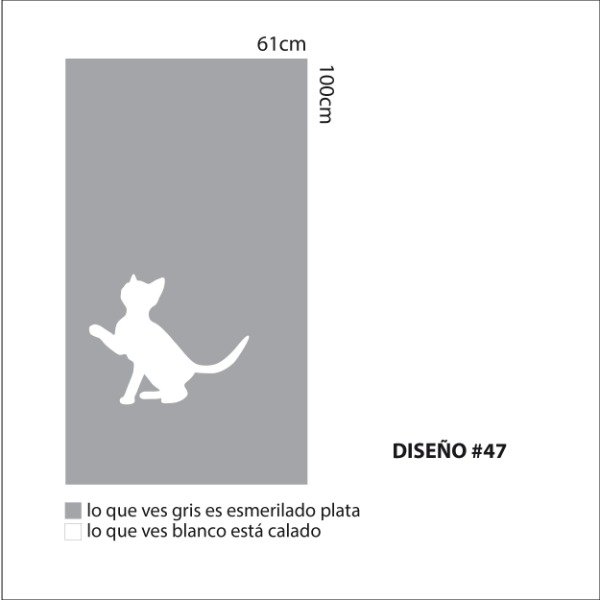 Una plancha de vinilo autoadhesivo esmerilado con Diseño calado. Tamaño de la plancha 100cm x 61cm.