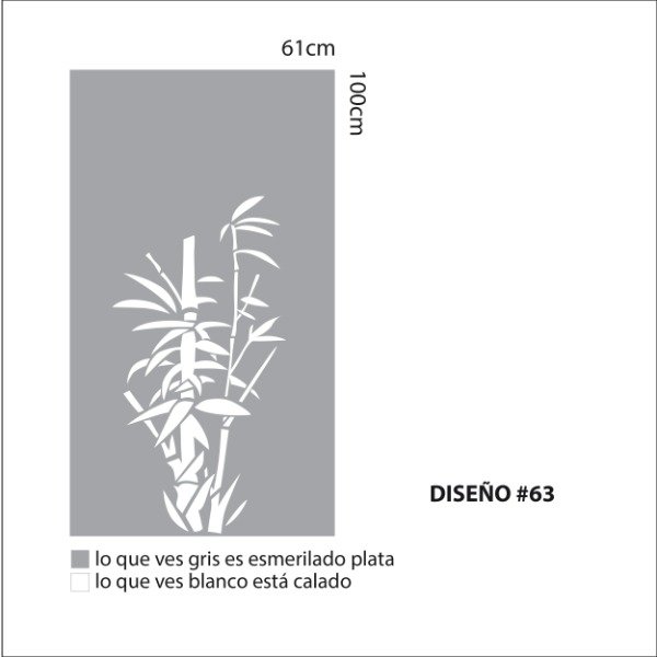 Una plancha de vinilo autoadhesivo esmerilado con Diseño calado. Tamaño de la plancha 100cm x 61cm.