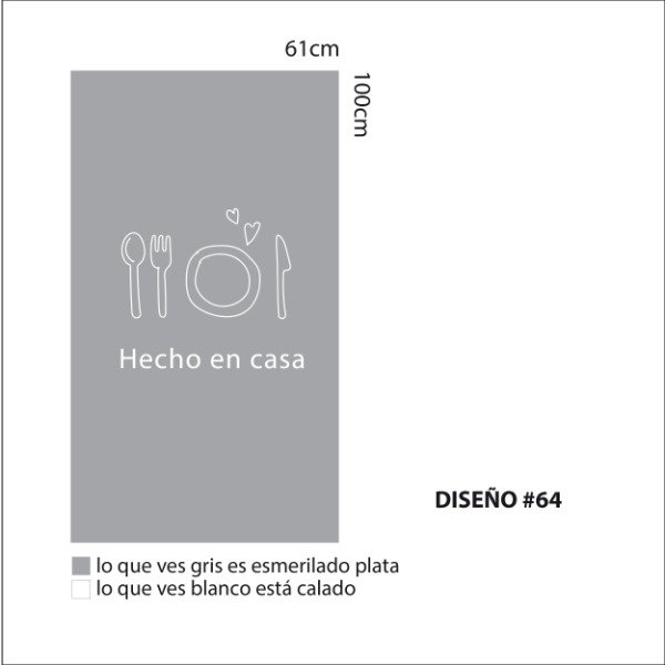 Una plancha de vinilo autoadhesivo esmerilado con Diseño calado. Tamaño de la plancha 100cm x 61cm.
