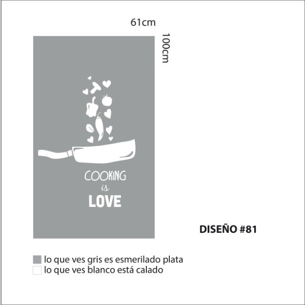 Una plancha de vinilo autoadhesivo esmerilado con Diseño calado. Tamaño de la plancha 100cm x 61cm.